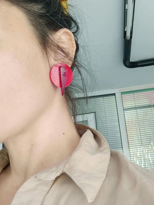 Red Acrylic Disc Stud Earrings
