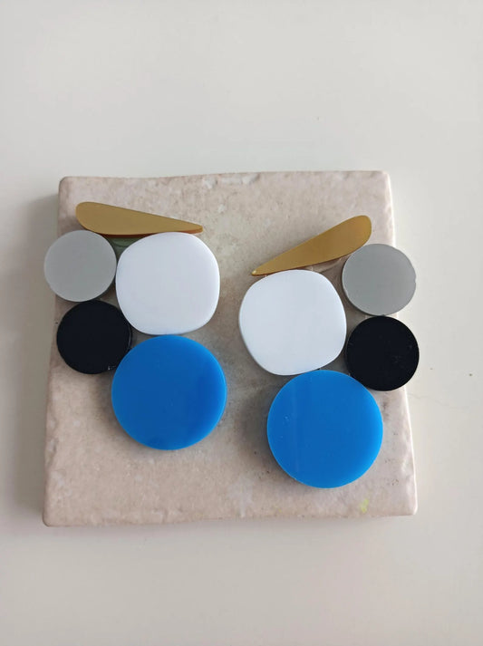Blue & Black Acrylic Disc Earrings