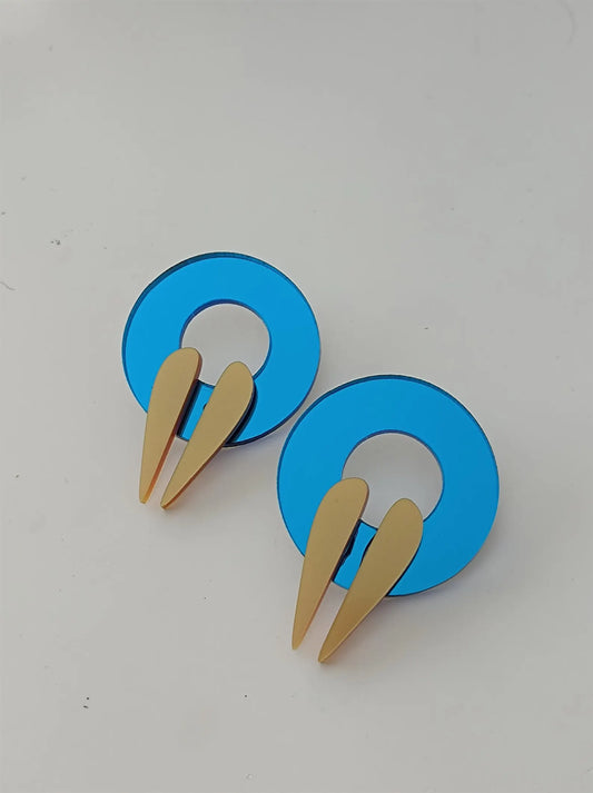 Blue Mirror Acrylic Statement Earrings